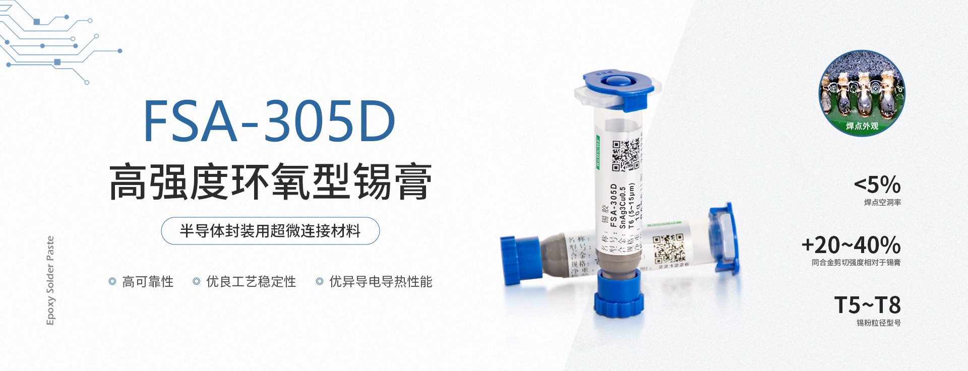環氧樹脂錫膏,焊點加固,絕緣性加強,適用微間距,工藝簡化提升效率,包括規模商用的 6號粉、7號粉、8號粉,以及尖端應用9號和10號粉